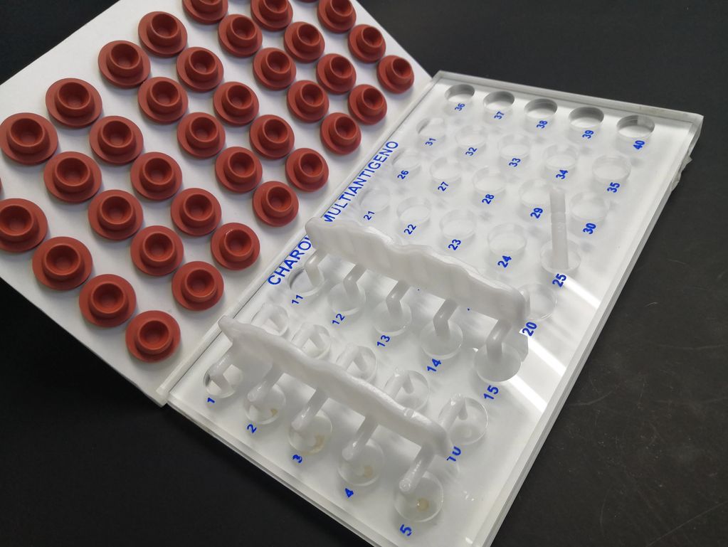 Para facilitar el almacén y carga de alérgenos material de acrílico, estéril, con capacidad para 40 alérgenos.