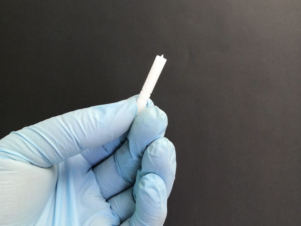 Lanceta de Plástico desechable, la cara interna de la punta cuenta con ranuras transversales, el método de uso es por punción.